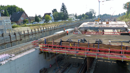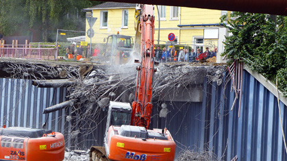 Kurz vor dem Abriss standen wir noch auf der Brücke "Frohmestraße" über der A 7. Dann ging es los.