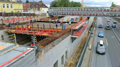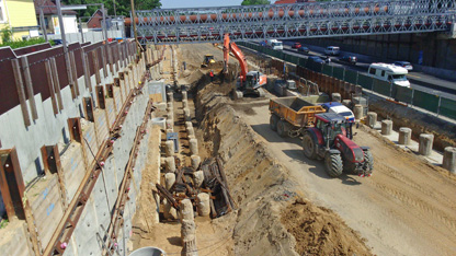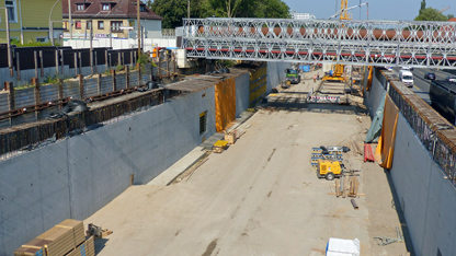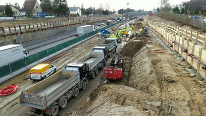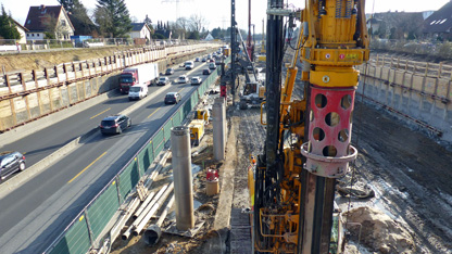 Viele Bohrpfähle müssen gesetzt werden, teiweise über 20 Meter tief. t Die Tunnelwände stehen jetzt kommt der "Deckel" drauf.