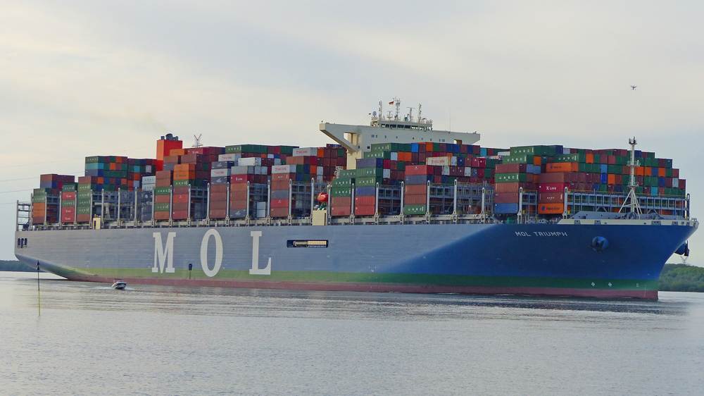 2017 MOL Triumph. Hamburg am 15.05.2017 z. Z. das größte Containerschiff der Welt. L. 400.0 m B. 59,0 m kann 20.175 Container laden!