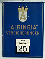 Von einen Briefmarkenhändler aus der Schweiz habe ich diesen "ALBINGIA" Briefumschlag aus dem Jahre 1934. Die "ALBINGIA" hatte damals noch die Anschrift "Alsterdamm 39" später ab 1947 "Ballindamm 39" . Der Brief ging nach "Calcutta" British Indien an die Firma "Volkart Brothers" die heute noch existiert. |